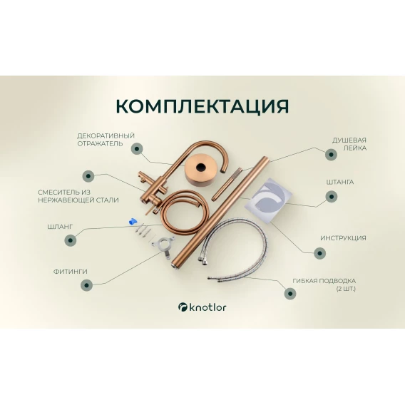 Аэратор, Гибкая подводка, Душевой шланг, Душевая лейка, Держатель для душевой лейки