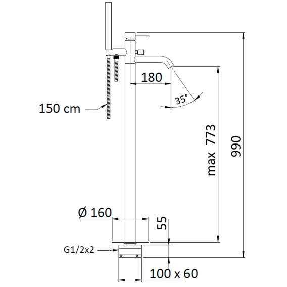 Высота излива 77.3 см