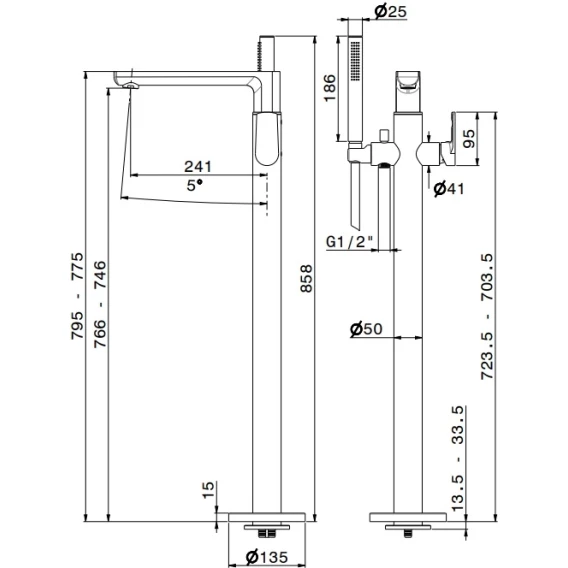 Смеситель напольный для ванны Newform Haka 72084E.21.018 хром