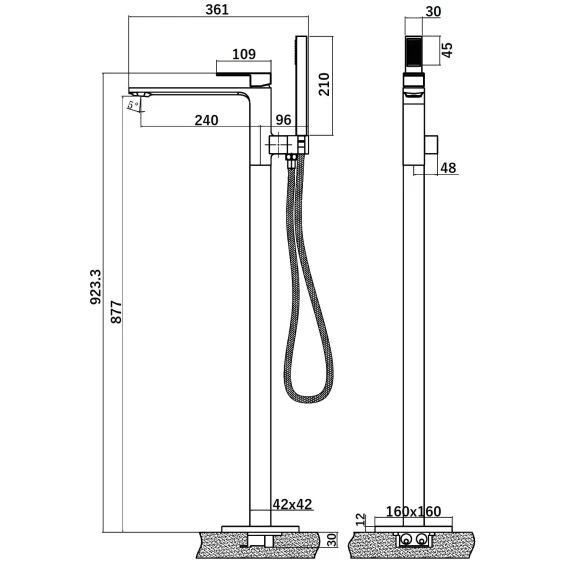 Смеситель напольный для ванны Orange Lutz M04-336b