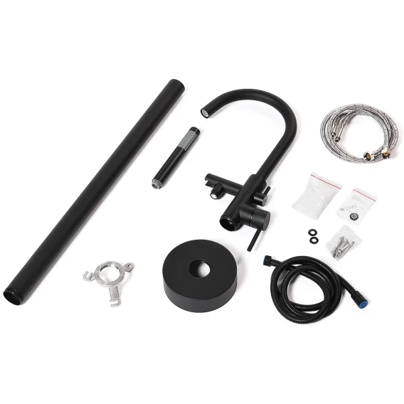 Аэратор, Гибкая подводка, Душевой шланг, Душевая лейка, Держатель для душевой лейки