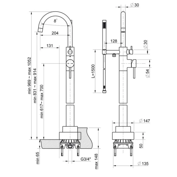 Смеситель напольный для ванны Paini Cox 78PJ136LM