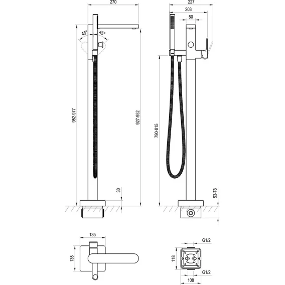 Аэратор, Гибкая подводка, Душевой шланг, Душевая лейка, Держатель для душевой лейки