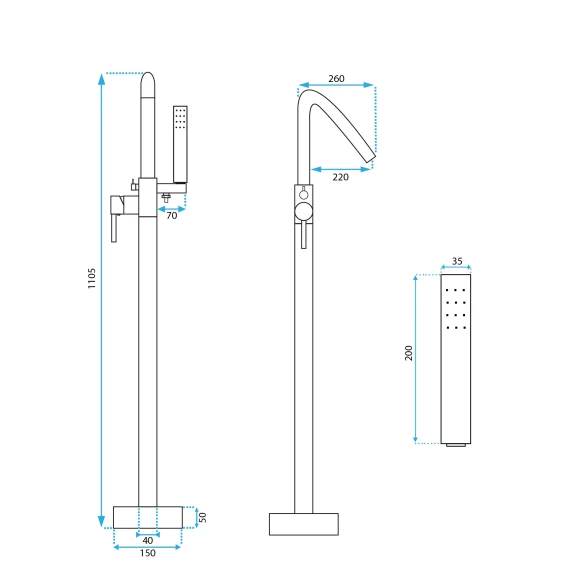 Смеситель напольный для ванны Rea Aras REA-B2717 черный матовый