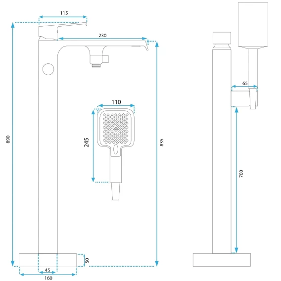 Аэратор, Гибкая подводка, Душевой шланг, Душевая лейка, Держатель для душевой лейки