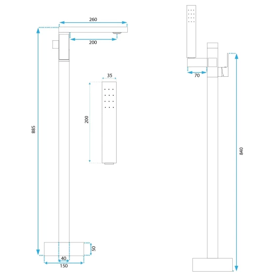 Смеситель напольный для ванны Rea Tery REA-B5307 золотой матовый