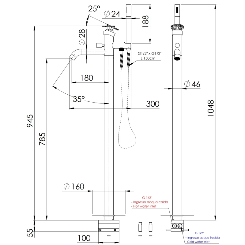 Смеситель напольный для ванны Remer Chrono CH08BG золотой матовый