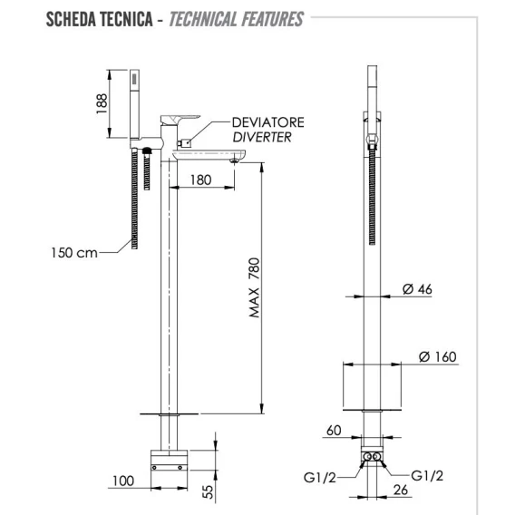 Аэратор, Душевой шланг, Душевая лейка, Держатель для душевой лейки, Скрытая монтажная часть