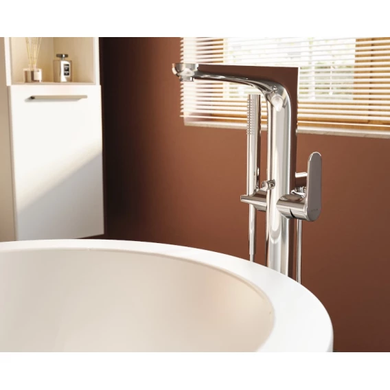 Позитивные впечатления о продукции Витра и непосредственно о смесителе для ванны. Вовремя присмотрела оригинальную модель, которая чудненько вписалась в задуманный интерьер. Излив с встроенным аэратором подходящей длины, не крутится, удобно пользоваться. Душ с гибким шлангом, надежно крепится на стойке.