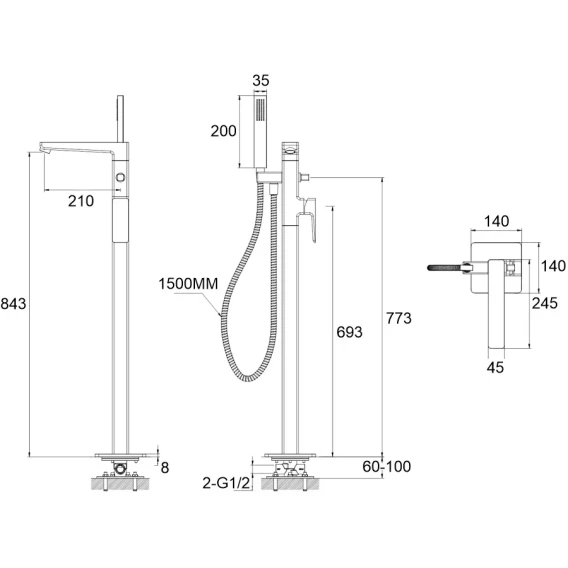 Смеситель напольный для ванны Whitecross X X1433GM оружейная сталь