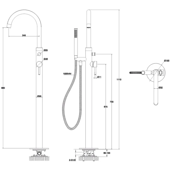 Высота излива 96 см