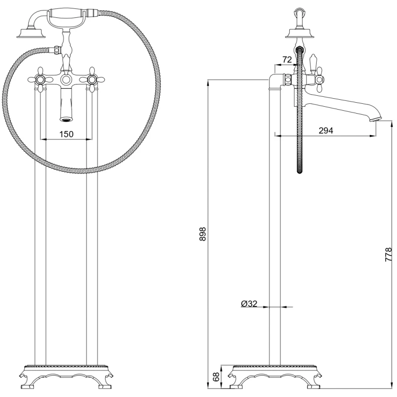 Смеситель напольный для ванны Wonzon & Woghand Retro WW-88649020-CR хром