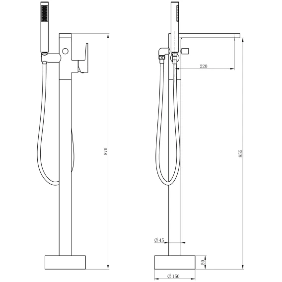 Смеситель напольный для ванны Wonzon & Woghand Stick WW-88649901-BGM темный графит матовый