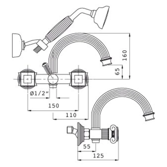 Смеситель для ванны Cezares APHRODITE-V-03/24-O