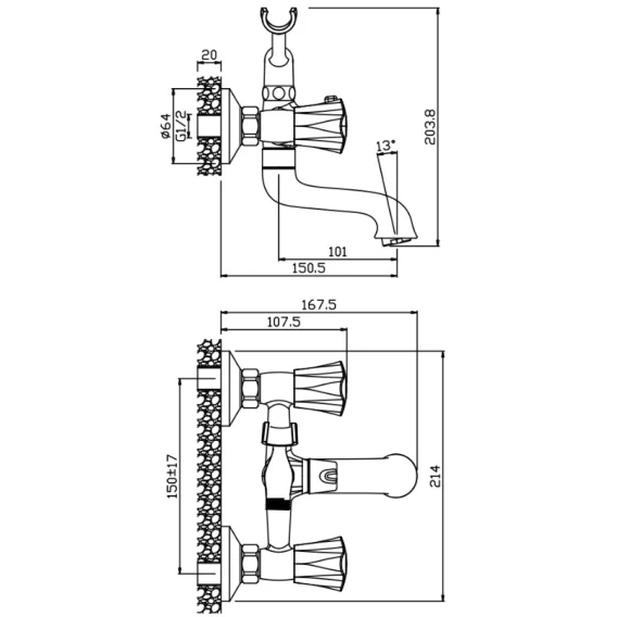 Аэратор, Металлическая розетка, Эксцентрики, Душевой шланг, Душевая лейка, Держатель для душевой лейки