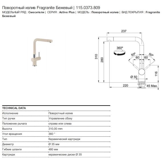 Смеситель для кухни Franke Active Plus 115.0373.809