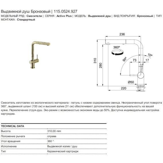 Смеситель для кухни Franke Active Plus 115.0524.927
