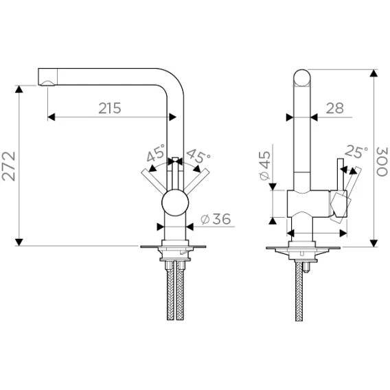 • Подводка: гибкая, в оплетке из нержавеющей стали