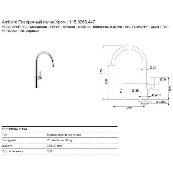 Смеситель для кухни Franke Rinsos 115.0278.244