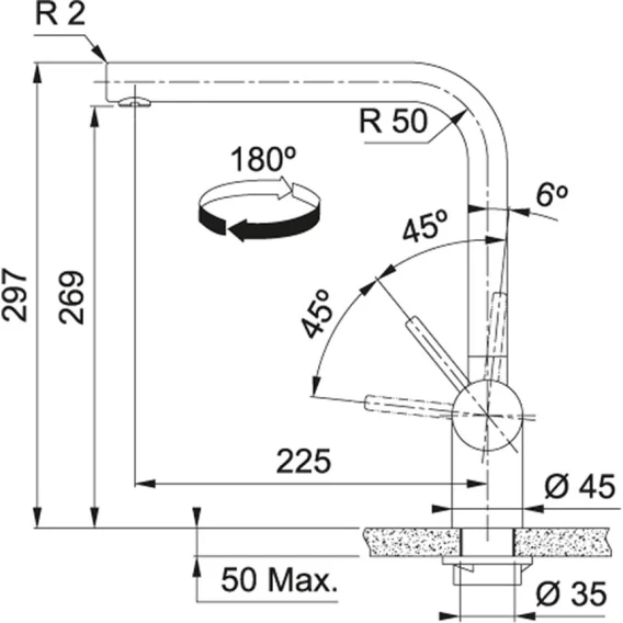 Длина излива 22.5 см