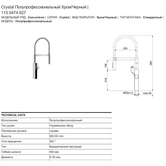 Смеситель для кухни Franke Crystal 115.0474.627