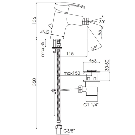 Смеситель для биде с донным клапаном Kaja Platinum 57220-C
