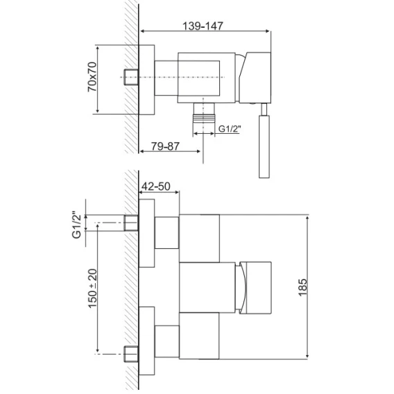 Смеситель для душа Kaja Aquadrat 58610-C