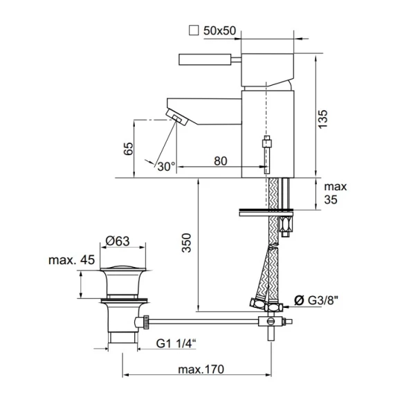 Крепление, Аэратор, Гибкая подводка, Донный клапан