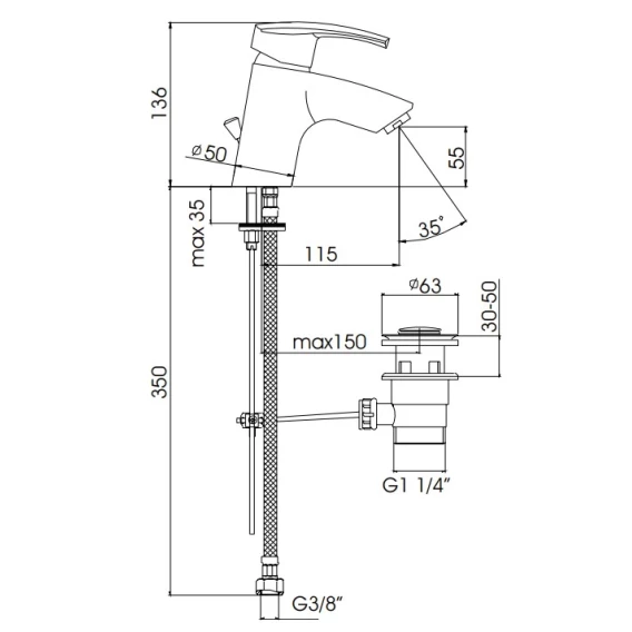 Крепление, Аэратор, Гибкая подводка, Донный клапан