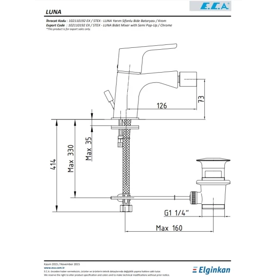Смеситель для биде с донным клапаном E.C.A Luna 102110192EX