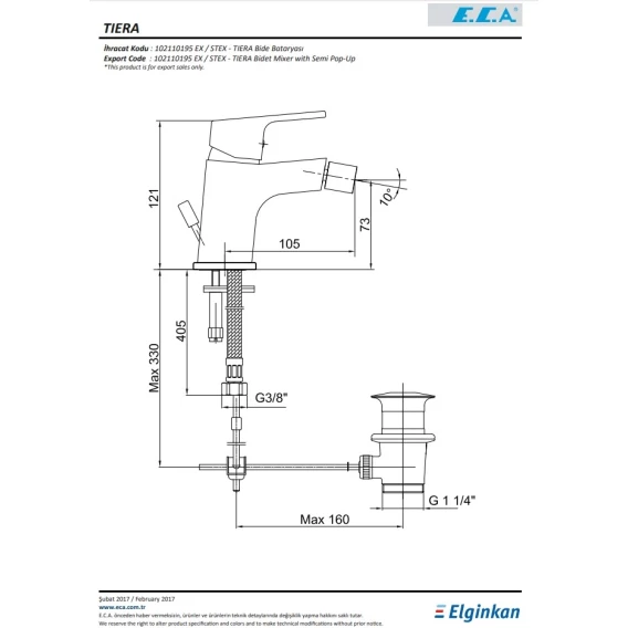 Смеситель для биде с донным клапаном E.C.A Tiera 102110195EX