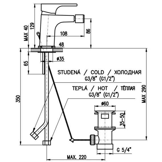 Смеситель для биде с донным клапаном Rav Slezak Yukon YU145.5KCB