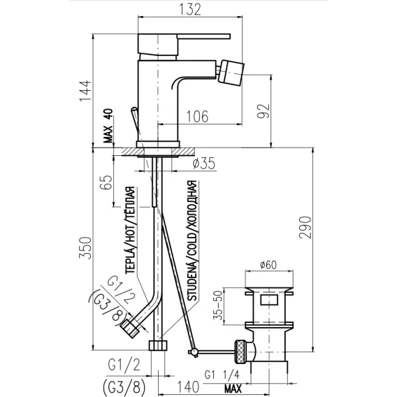 Смеситель для биде с донным клапаном Rav Slezak Zambezi ZA045.5