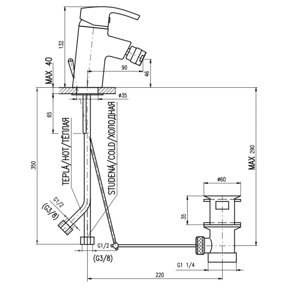 Смеситель для биде с донным клапаном Rav Slezak Rio R145.5
