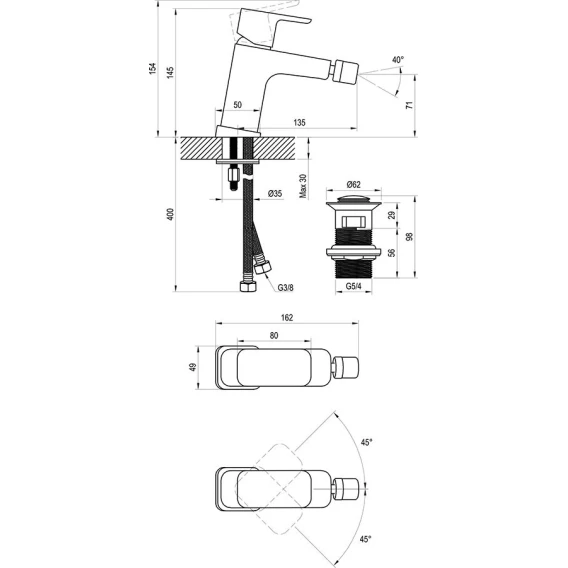 Крепление, Аэратор, Гибкая подводка, Донный клапан