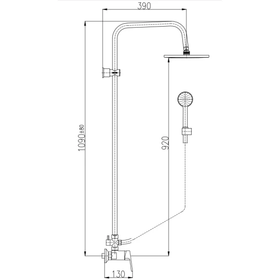 Металлическая розетка, Эксцентрики, Душевой шланг, Душевая лейка, Держатель для душевой лейки, Верхний душ, Смеситель, Кронштейн, Штанга душевая