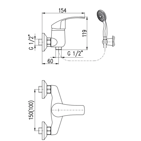 Металлическая розетка, Эксцентрики, Душевой шланг, Душевая лейка, Держатель для душевой лейки