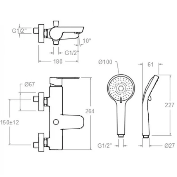 Аэратор, Металлическая розетка, Эксцентрики, Душевой шланг, Душевая лейка, Держатель для душевой лейки