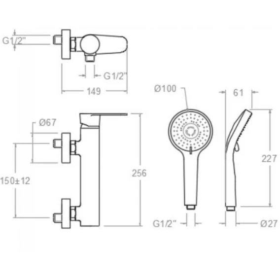Металлическая розетка, Эксцентрики, Душевой шланг, Душевая лейка, Держатель для душевой лейки