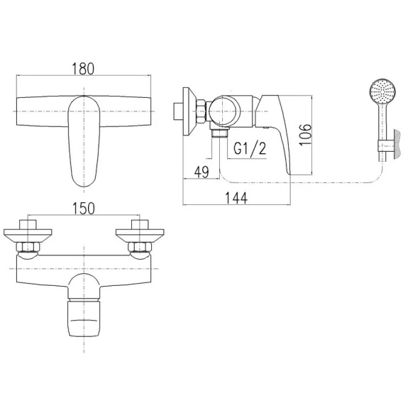 Металлическая розетка, Эксцентрики, Душевой шланг, Душевая лейка, Держатель для душевой лейки