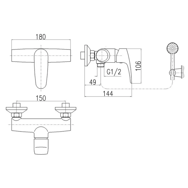 Металлическая розетка, Эксцентрики, Душевой шланг, Душевая лейка, Держатель для душевой лейки
