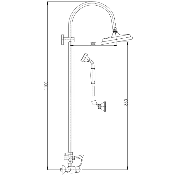 Металлическая розетка, Эксцентрики, Душевой шланг, Душевая лейка, Держатель для душевой лейки, Верхний душ, Смеситель, Кронштейн, Штанга душевая