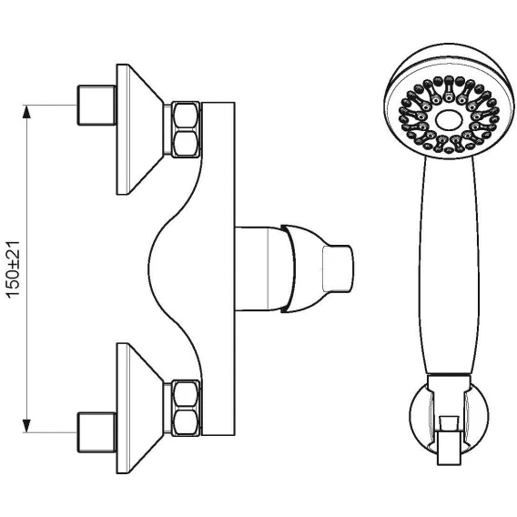 Металлическая розетка, Эксцентрики, Душевой шланг, Душевая лейка, Держатель для душевой лейки