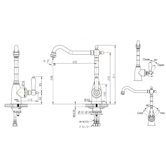 • Поток воды: 8.3 L/min @ 0.3 MPa