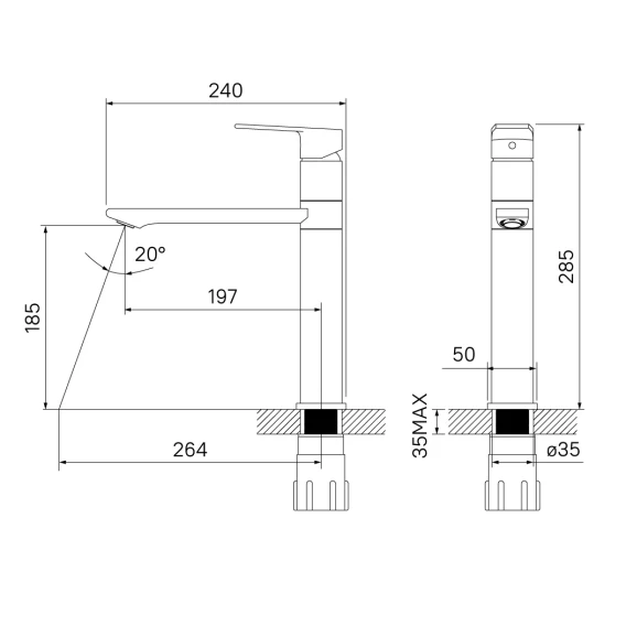 Длина излива 19.7 см