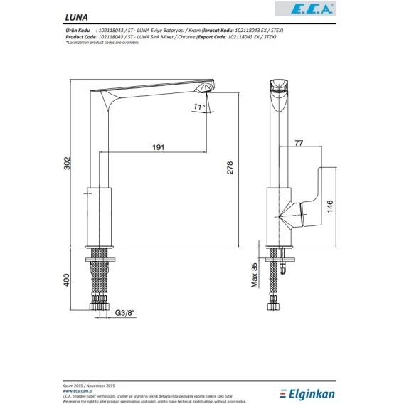 Смеситель для кухни E.C.A Luna 102118043EX
