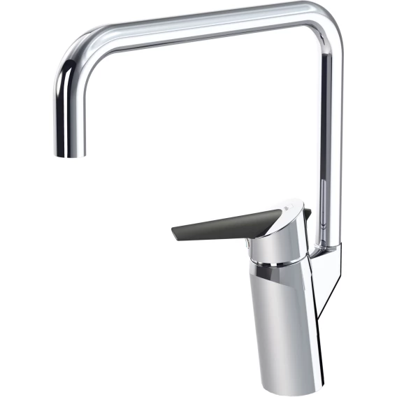 Смеситель для кухни с удобной рукояткой, высоким поворотным изливом и аэратором. Угол поворота извива составляет 120° (заводская установка). По желанию поворот излива может быть ограничен от 0° до 60°. В производстве были использованы только экологические материалы.