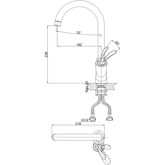 Высота излива 23.8 см