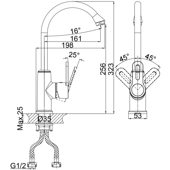 Высота излива 25.6 см