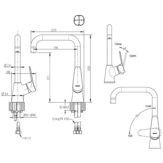 • Поток воды: 8.3L/min @ 0.3 MPa